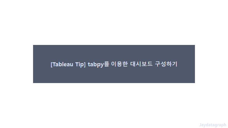 [Tableau Tip] Tabpy를 이용한 대시보드 구성하기Data Visualization/Tableau Dashboard(Tip) 2021. 8. 22. 18:47