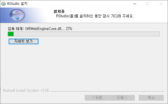 [그림 22] R 스튜디오 설치 중 화면