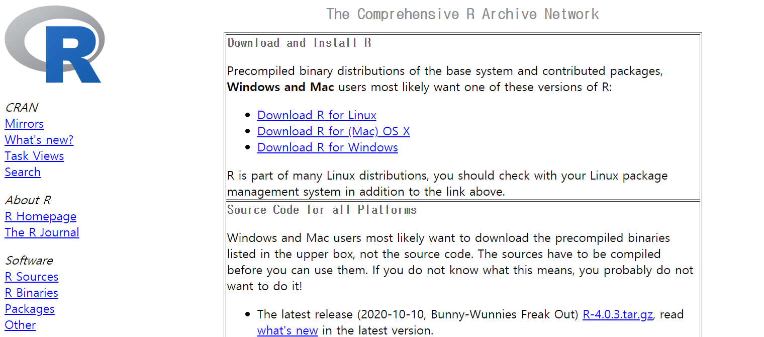 - R 설치파일 다운로드 하기