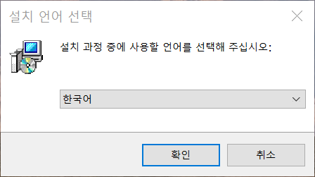 따라하기R 설치하기 ① 설치 파일을 더블 클릭하여 실행시키면 언어 선택 창이 나타납니다. ‘한국어’를 선택하고 ‘확인’을 클릭합니다.