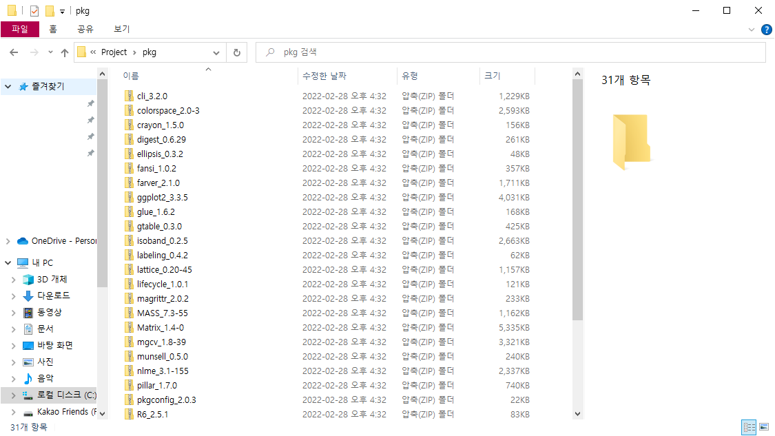 > write.csv(basename(pkgInfo[,2]), + file = "c:/Project/pkg/pkg.csv", + row.names = FALSE)R 라이브러리 설치하기