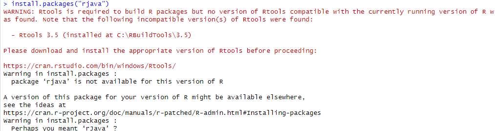 WARNING: Rtools is required to build R packages but no version of Rtools compatible with the currently running version of R was found. Note that the following incompatible version(s) of Rtools were found: