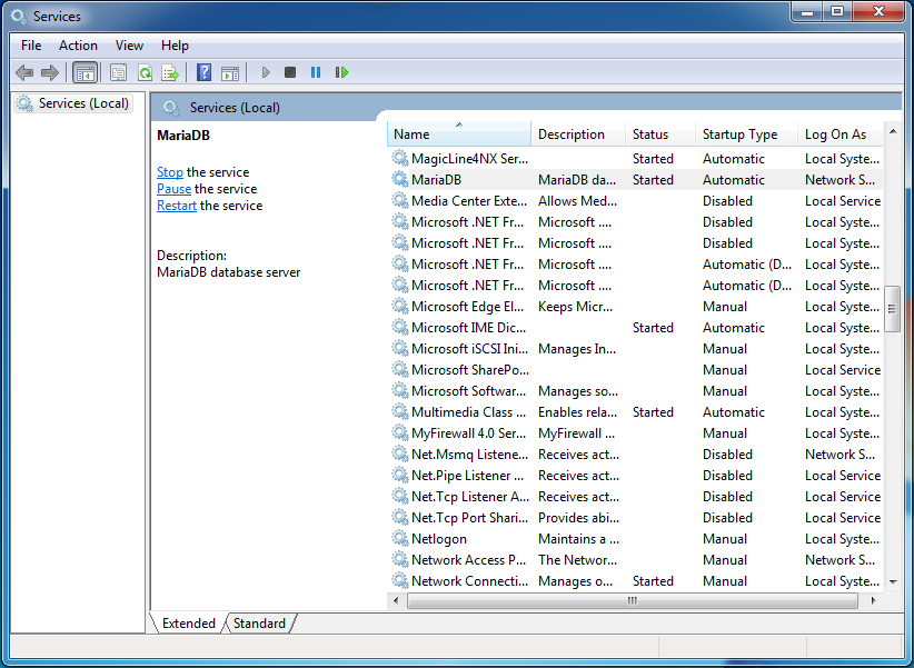1. 제어판에서 Administrative Tools에 들어간 후 서비스에 접속해서 MariaDB의 서비스 상태를 종료해준다.