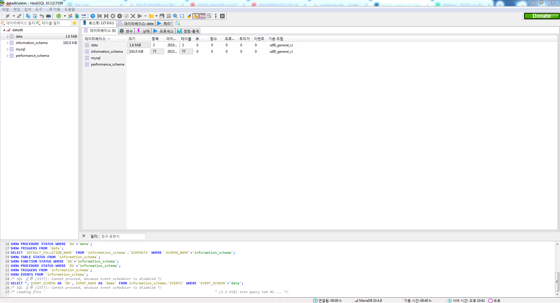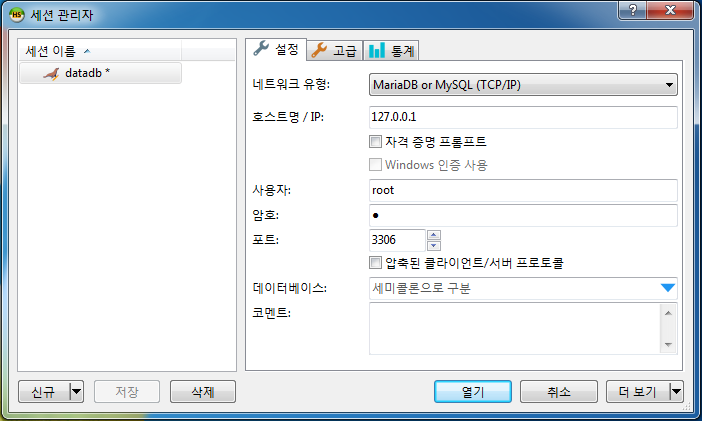 [그림 1] HeidiSQL 세션관리자 MariaDB root 계정 분실 시 조치 방법