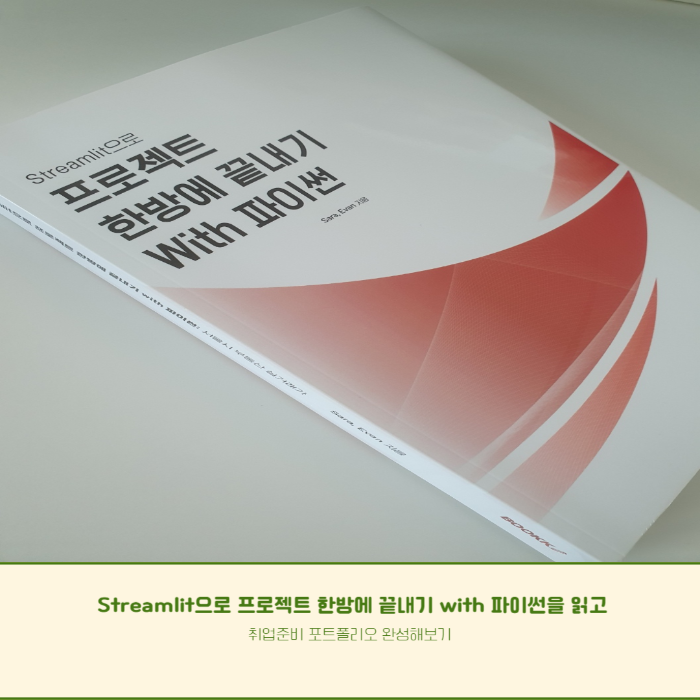 [책 리뷰] Streamlit으로 프로젝트 한방에 끝내기 with 파이썬Data 이모저모/책 리뷰 2023. 8. 15. 18:09