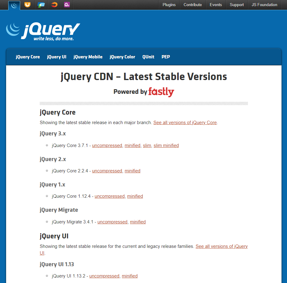 "jQuery CDN", jQuery, https://releases.jquery.com/