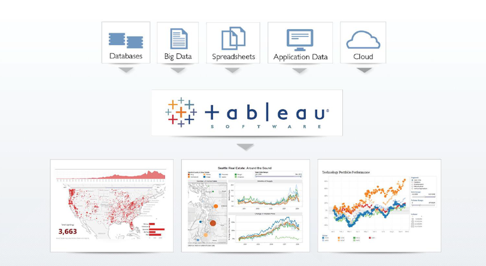 <그림 2>에서 본 바와 같이, BI 솔루션에는 상당히 많이 존재하고 있으며 사분면 중 제 1 사분면(우측 상단)에 해당하는 솔루션들이 현재 상당히 주목받고있는 솔루션들 중 하나이다. 필드에서는 태블로를 활용한 시각화 프로젝트가 2020년 현재 활발하게 진행되고 있으며 인력이 부족할 정도로 프로젝트가 더 많이 나오고 있는 상황이다. 이 처럼 태블로는 최근에까지 각광받고 있는 BI 솔루션, 데이터 시각화 툴이다. 데이터를 다양한 형태의 차트로 시각화하여 이해를 도와주는 솔루션이다. 다양한 형태로 구성된 데이터를 활용하여 Self 데이터 분석이 가능하다. 직관적이고 사용하기 쉬운 인터페이스를 통해 간단한 교육만 받는다면 쉽게 데이터 분석이 가능하다.