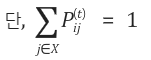 > 특정 시점 t의 i번째 상태 공간에서 t+1의 j번째 상태 공간으로 변화를 나타내는 확률