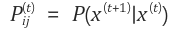 ex) 오늘 비가 올 때 내일 비가 올 확률 = P(비|비) = P(x^(t+1) = 2|x^(t) = 2)