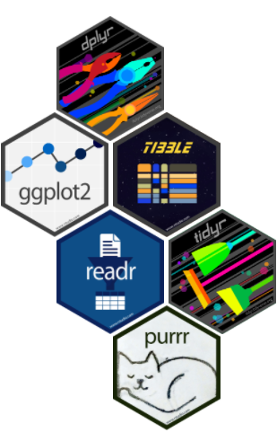 Tidyverse는 데이터 사이언스를 위한 다양한 패키지들을 하나로 모와 놓은 패키지 꾸러미다. 데이터 처리부터 시각화까지 데이터 사이언스의 전체 프로세스를 수행하는데 필요한 패키지들이 담겨 있으며, 해들리 위컴(Hadly Wickham)에 의해 소개되었다. 코어 패키지에는 ggplot2, dplyr, tidyr, readr, purrr, tibble, stringr, forcats로 구성되어 있다. 수집에서 사용하는 코어 패키지 readr은 빠른속도로 csv, tsv 파일을 불러올 수 있으며, dplyr은 분석 모델에 사용 가능하도록 가공하는데 사용한다. ggplot2는 R에서 가장 매력적으로 느낄 수 있는 패키지 중에 하나이며, 분석의 꽃 시각화를 할 수 있는 패키지이다.