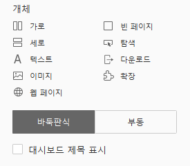[그림 2] 대시보드 개체 3. 생성한 gif 파일을 웹 페이지 개체를 사용하기 위해 웹 URL이 필요하다. 따라서 github의 public 프로젝트에 개시한다. AWS 등의 클라우드를 이용해서 이미지의 웹 URL을 생성할 수 있는 경우에는 그 방법을 사용해도 무방하다.